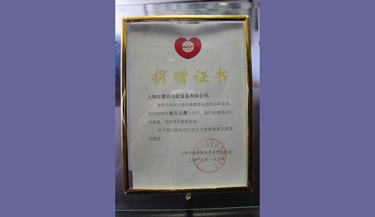 2016年,上海紅箭自動化設(shè)備有限公司為上海市慈善基金會捐款